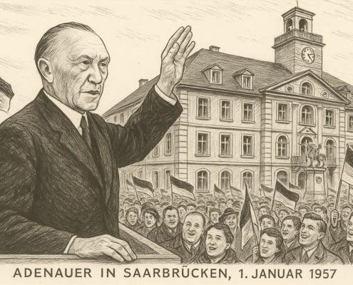 Das, was wir heute „Saarland“ nennen, ist ein Produkt der Nachkriegszeit. Vor 1945 war die Region ein Flickwerk preußischer und bayerischer Verwaltungsbezirke. 1920 entstand daraus das „Saargebiet“ – eine Zone unter Völkerbundsmandat, französisch verwaltet, aber völkerrechtlich weiterhin deutsches Territorium¹. 1935 endete dieses Provisorium durch ein Plebiszit, und das Gebiet wurde Teil des Deutschen Reiches². Einen souveränen saarländischen Staat hat es bis dahin nie gegeben.